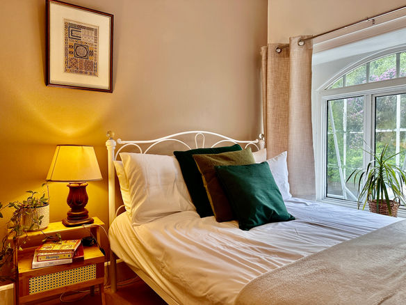 We have a 10 bedroom house, yoga studio, music studio, apothecary, coworking space, ceremony tipi & cosy living room with a fire place. All rooms come fully furnished.